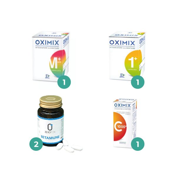 Un mix di prodotti ideato per il sostegno del nostro sistema immunitario durante il periodo invernale. Betamune (2 conf), Oximix 1+ (1 conf), Oximix Multi (1 conf), Oximix C1000 (1 conf)